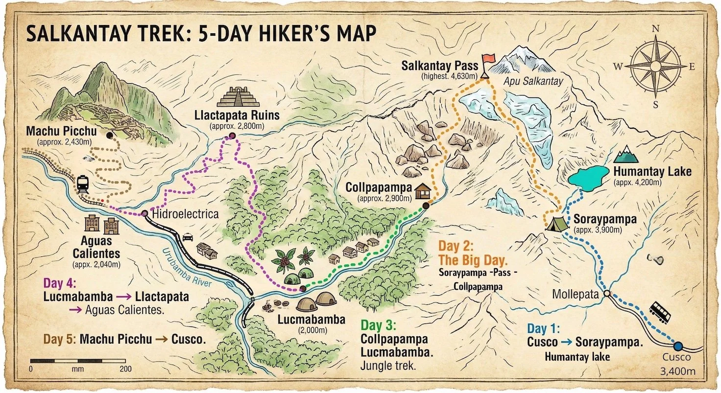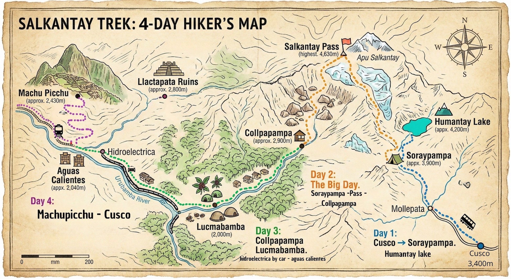 Max Elevation: 4,630 m (15,190 ft) — Salkantay Pass.